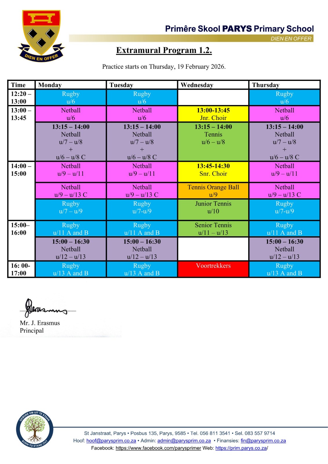 Buitemuursprogram Die sportprogram vir Kwartaal 1. Laai hier af The sports program for Quarter 1. Download
